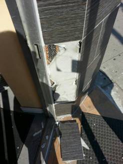 来自中国四川省的投资移民胡女士,去年计划将早前在多伦多市中心买下的商铺物业,装修成面积约700尺咖啡店经营,由人生地不熟,英语不太灵光,就只能去找同声同气的华人来做了。她说,当时上网站,找了几个在上面卖广告贴信息的装修公司,经过一番了解和比较报价,从中选了一家叫“华X” 的装修公司来做。 今年初,先签约让这个公司为店铺门口外墙贴磁砖,后来到3月份又再委托其负责店内铺地板、墙壁扇灰、装排气管、改给排水管工程,总价款约2万元,原定4月初完工。令胡女士气愤的是,由老板自始至终只带着一个中国留学生做的全部工程,不仅手工粗糙,用料很差,甚至用上了纸张和塑料作代替物,质量就当然是可想而知了: 店内地板装得凹凸不平、用胶纸作固定的排气管一碰就掉下来(图1)、水龙头出水很慢,星盘下水管因为出水口装得高过管道而竟然排出水(图2) ,之前装好的外墙贴磁砖仅几个月就在前几天掉了一大块下来(图3) 。